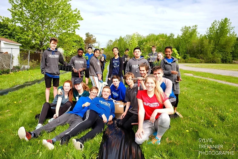 Le 4 juin 2019, nos socio-arboriculteurs ont complété un important projet de verdissement dans la cour de l'école Chavigny en compagnie d'une centaine de jeunes déterminés! L'aménagement réalisé comprend une haie brise-vent de 190 arbres permettant de compléter la ceinture boisée autour de l'école ainsi qu'une forêt nourricière d'une vingtaine de mètres carrés tous près d'une serre existante.